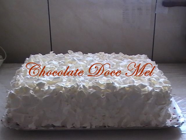 Casinha de chocolate branco decorada com coelhinhos e joaninhas.